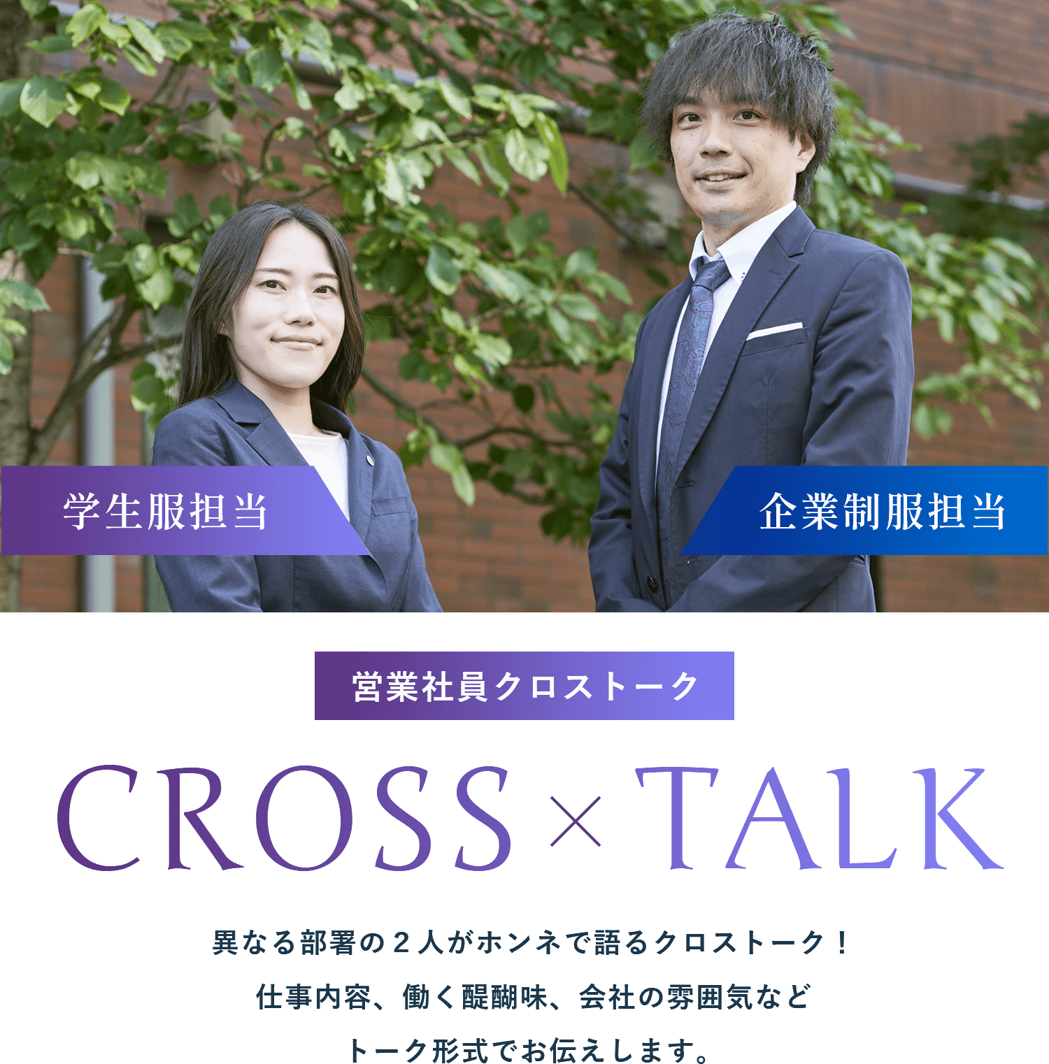 一般的なアパレル業とはちがい、学生様一人ひとりの人生一度の晴れの日に携わることができる学生服の仕事に魅力を感じ、学生服事業に強みをもつ阪急百貨店ユニフォームを選びました。