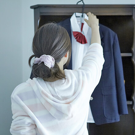 - 制服は型崩れしないようにハンガーにきちんとかけましょう。