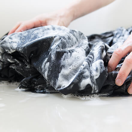 - 強く生地を絞らないようにしましょう。押し洗いの感覚です。