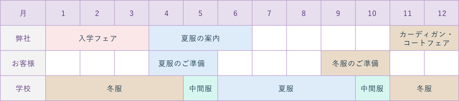 例えば男子生徒の場合は中学校入学のタイミングが体の成長の変化が著しい時期に入ります。ですのでなるべく入学手前の2月〜3月の採寸したデータをもとに制服を購入しましょう!