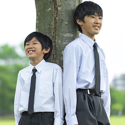 同じ学校にご入学になればの話ですが、例えばお兄ちゃんが入学する4月、大抵、成長を考えて大きめの制服を購入されるのですが、弟も同じ学校に入学が決まっているのであれば、ジャストサイズの制服を購入されておき、そのまま弟に譲るのも一つですよ。