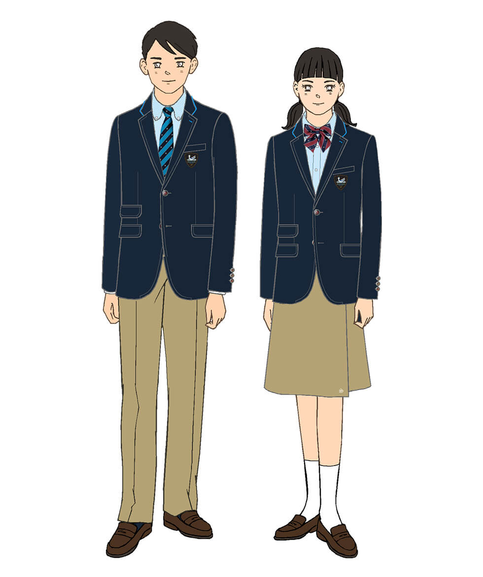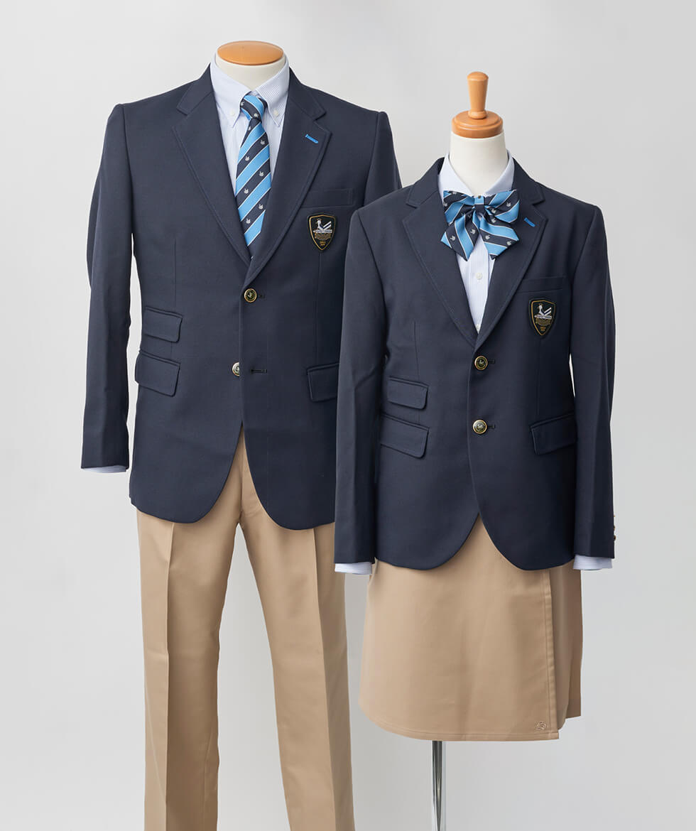 大阪府立水都国際中学校&水都国際高等学校様 世界共通定番紺ブレ+チノボトムス企画