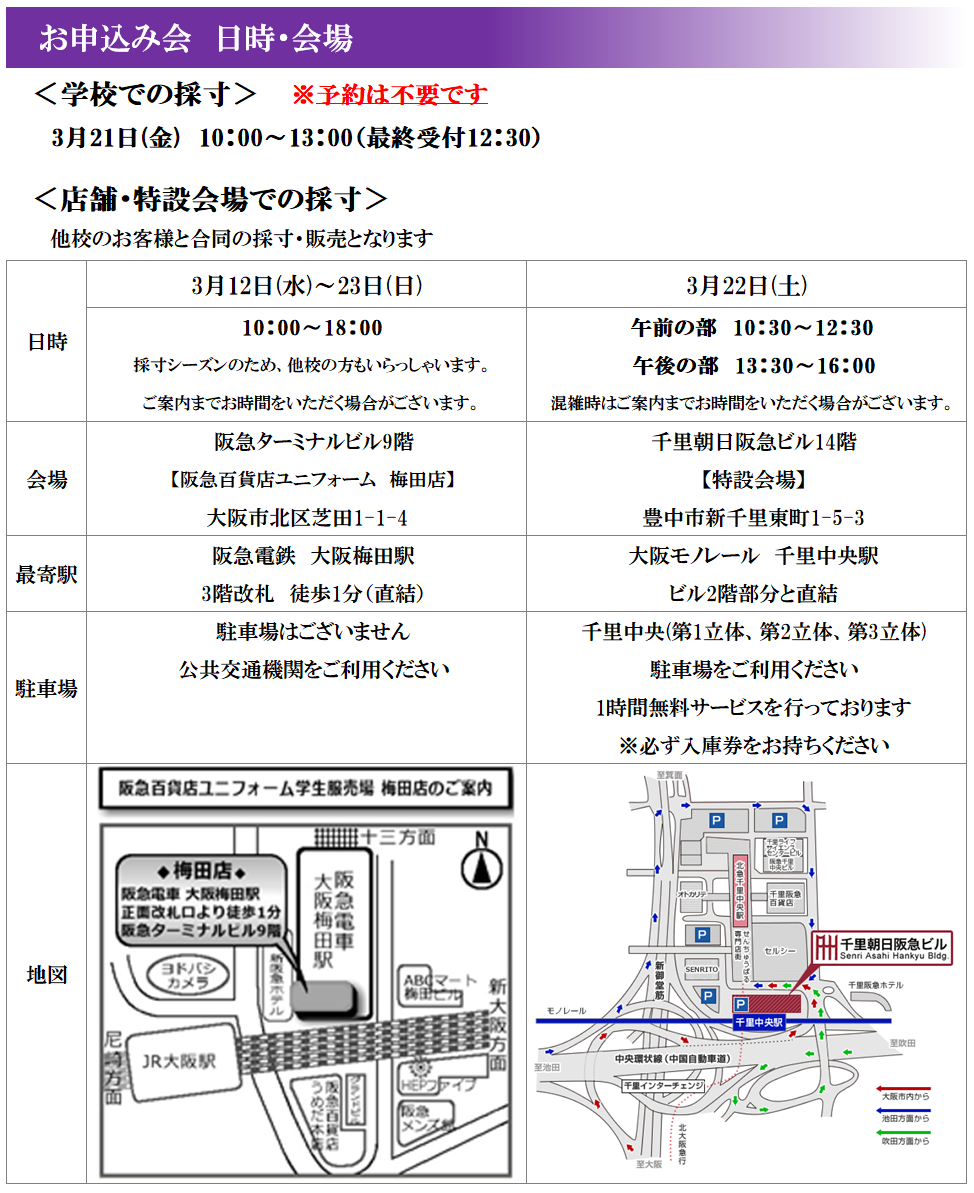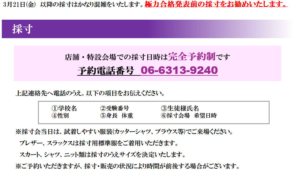 大阪府立豊中高等学校 制服お申し込みについて
