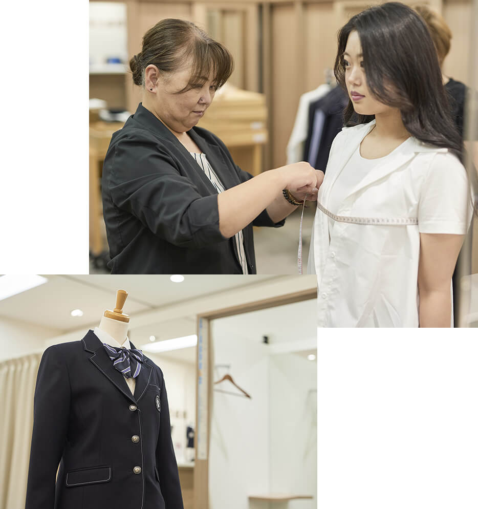 学生服の採寸は生徒様にとって、気持ちよく新学期のスタートを切っていただくための大切な時間です。だからこそお客様には採寸のお時間を特別な気分で過ごしていただきたいと考えています。